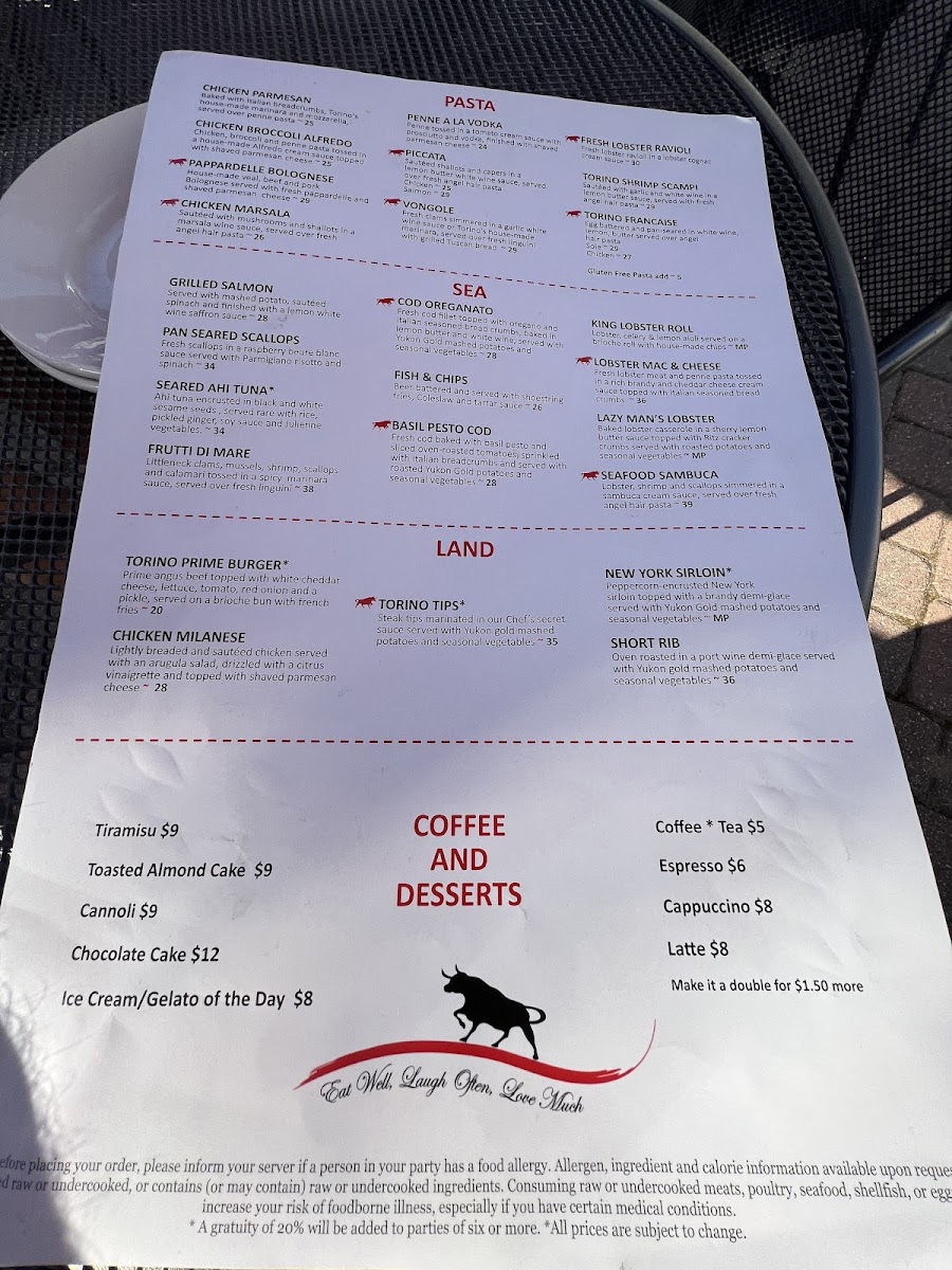 Torino has drawn a range of feedback from diners. Guests like Chuck Losch share their delight over the impeccable flavors and service, while Sarah highlights the cleanliness and ambiance. On the flip side, some voices have echoed concerns about the loud music dampening the dining experience. Nevertheless, the personal attention given by staff, as noted by Abraham I Lerner, who appreciated how they accommodated his son’s allergies, showcases a dedication to customer care that is commendable.